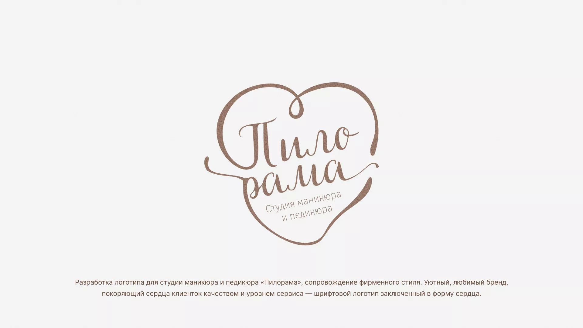 Разработка логотипа в Беслане для студии маникюра и педикюра «Пилорама», сопровождение фирменного стиля. Уютный, любимый бренд, покоряющий сердца клиенток качеством и уровнем сервиса — шрифтовой логотип заключенный в форму сердца.