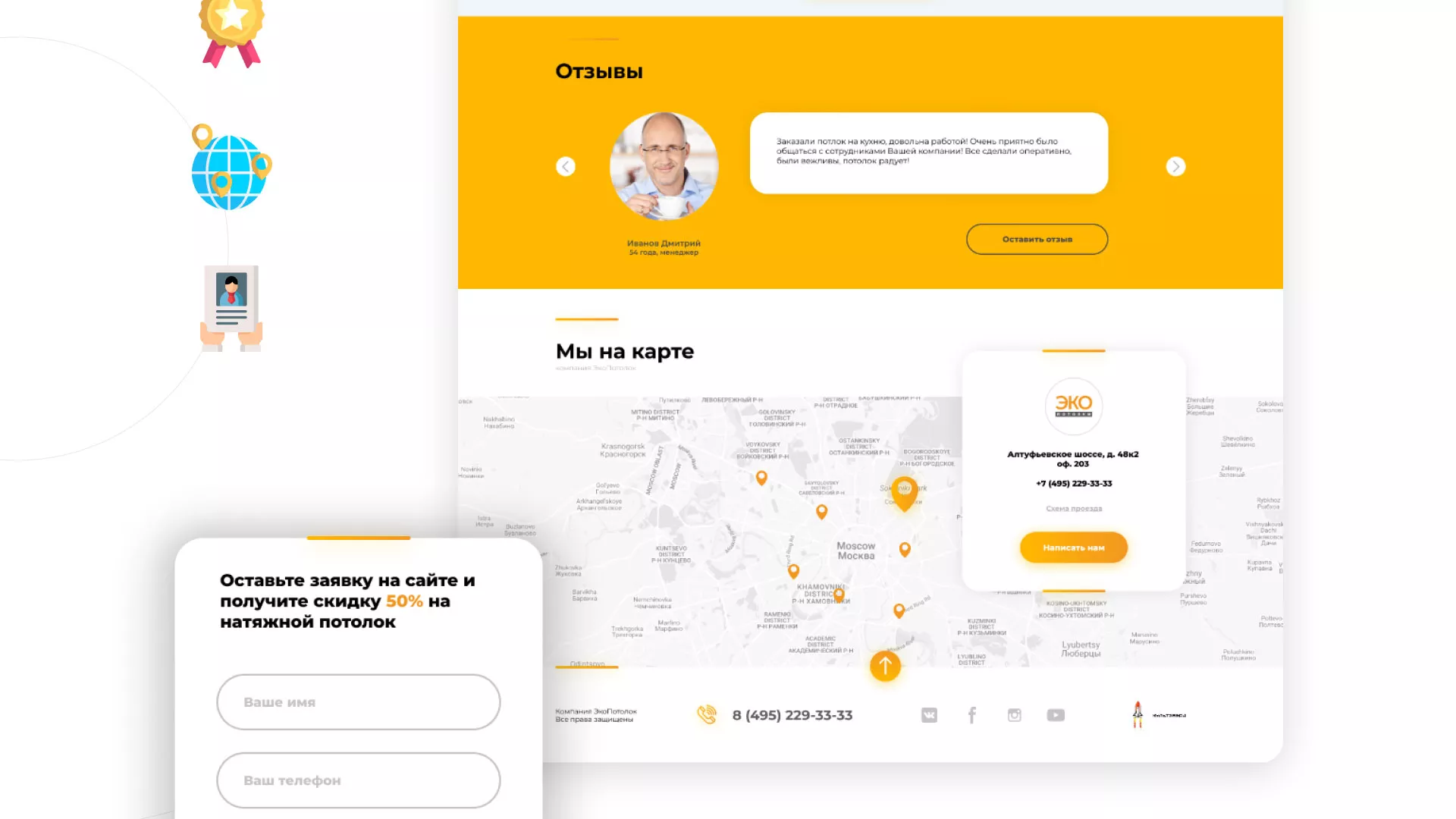 Вам нужна разработка сайта по натяжным потолкам в Беслане? Специалисты компании «Мультзавод» готовы помочь! Мы предлагаем большой выбор уже готовых вариантов, а также можем создать и что-нибудь новое!