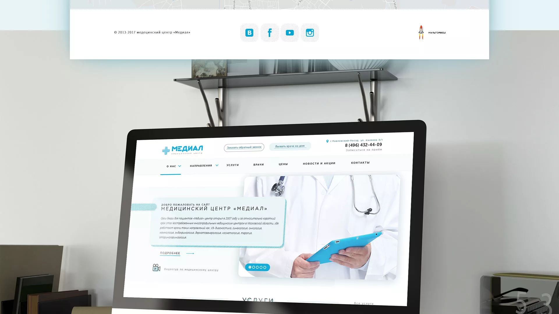 Сайт медцентра «Медиал» в Беслане является «лицом» учреждения, презентует его с лучших сторон, доступно информирует об оказываемых услугах. Он легкий в навигации и использовании. На таком сайте должно быть просто узнать о врачах, услугах, записаться на прием всем возрастным категориям, от 16 до 60 лет. Это должен быть современный, функциональный и эстетически приятный сайт. В рамках создания сайта для медицинского центра компания «Мультзавод» в Беслане ориентируется именно на эту задачу.